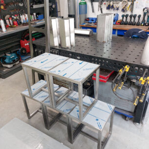 inox regal, inox sifon, inox korito, odsevalna hauba, industrijske inox nape, stenske in prečne odbojnike, industrijske zaščite za večje obremenitve, transportni inox voziček za industrijo čistih prostorov, kanalete,…